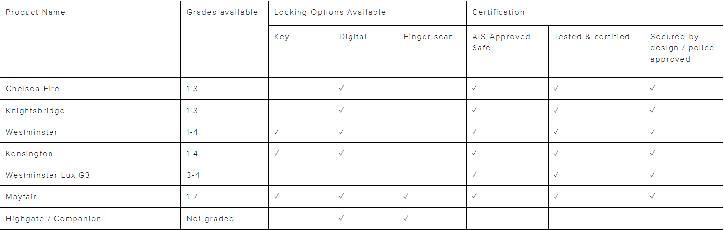 Our graded safes are all approved by the AIS Association of Insurance Surveyors, and independently tested.